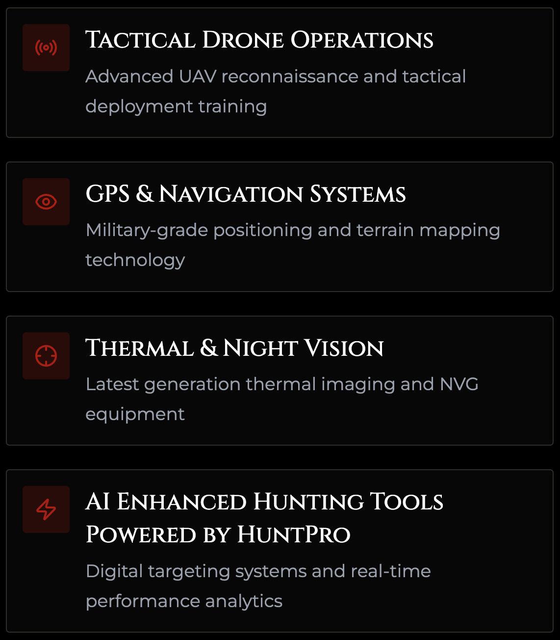 1100+ Acres • SOF Training • Night Operations • Helicopter Hunts • Luxury Cabins